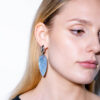 Chönyi Earrings Coral Pearly Drop Rhodium by NRTN. Size: 70 × 22 × 3.6 mm each. Materials: 925 Sterling Silver, Seafoam Blue Pearlescent Acrylic, Rhodium Vermeil. Collection BARDO – jewellery shaped from sterling silver, pearl and semi-precious gems, where craftsmanship meets spirit. Inspired by the Bardo – the liminal space between life and death – it reflects the mountain’s stillness, transformation, and the quiet poetry of rebirth.
