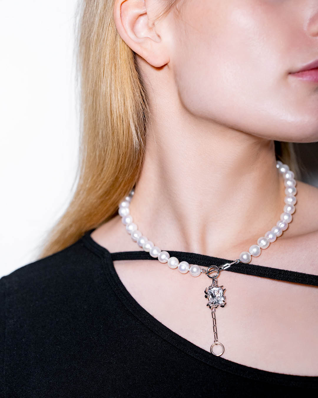 The GRAND KYENAY Pearl Necklace is crafted with genuine freshwater pearls by NRTN. Each strand is hand-tied in their Tallinn studio – radiant and versatile, featuring two wearing lengths that effortlessly transition from office attire to evening events. Size: 160 × 160 × 10 mm / Wear Length: 42 and 47 cm. 9–10 mm Freshwater Pearl. Clear Corundum Gem. 925 Sterling Silver. Rhodium Vermeil. BARDO – jewellery shaped from sterling silver and semi-precious gems, where craftsmanship meets spirit. Inspired by the Bardo – the liminal space between life and death – it reflects the mountain’s stillness, transformation, and the quiet poetry of rebirth.