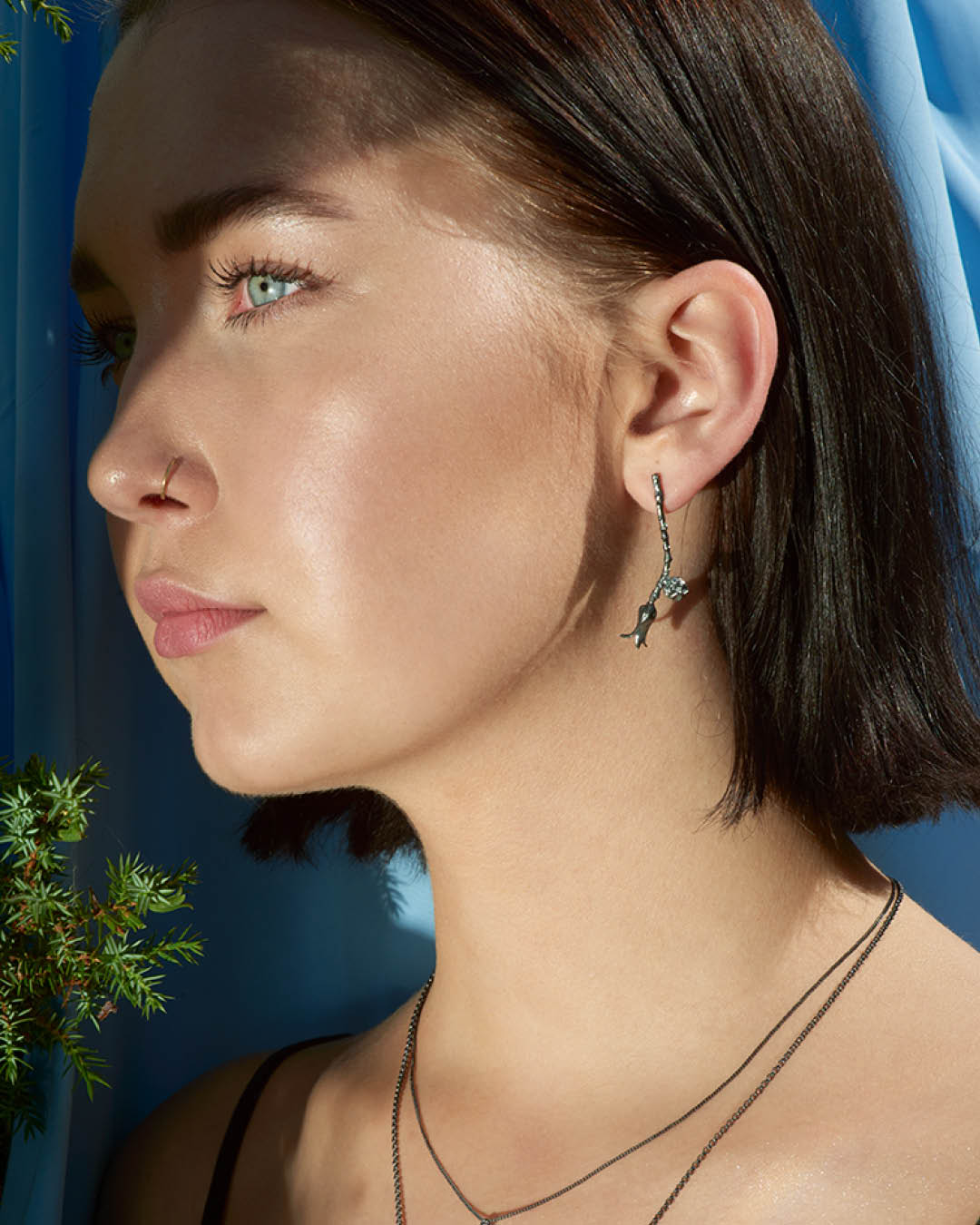 Jewellery collection JUNIPER BLOSSOMS by Kaia Saarna is inspired of Island life. Earrings are for pierced ears. All my jewellery have a jewelry maker mark and will come in a gift box. Size: 0,7 cm x 4,5 cm. Weight: 5,2.g. Material: silver 925.