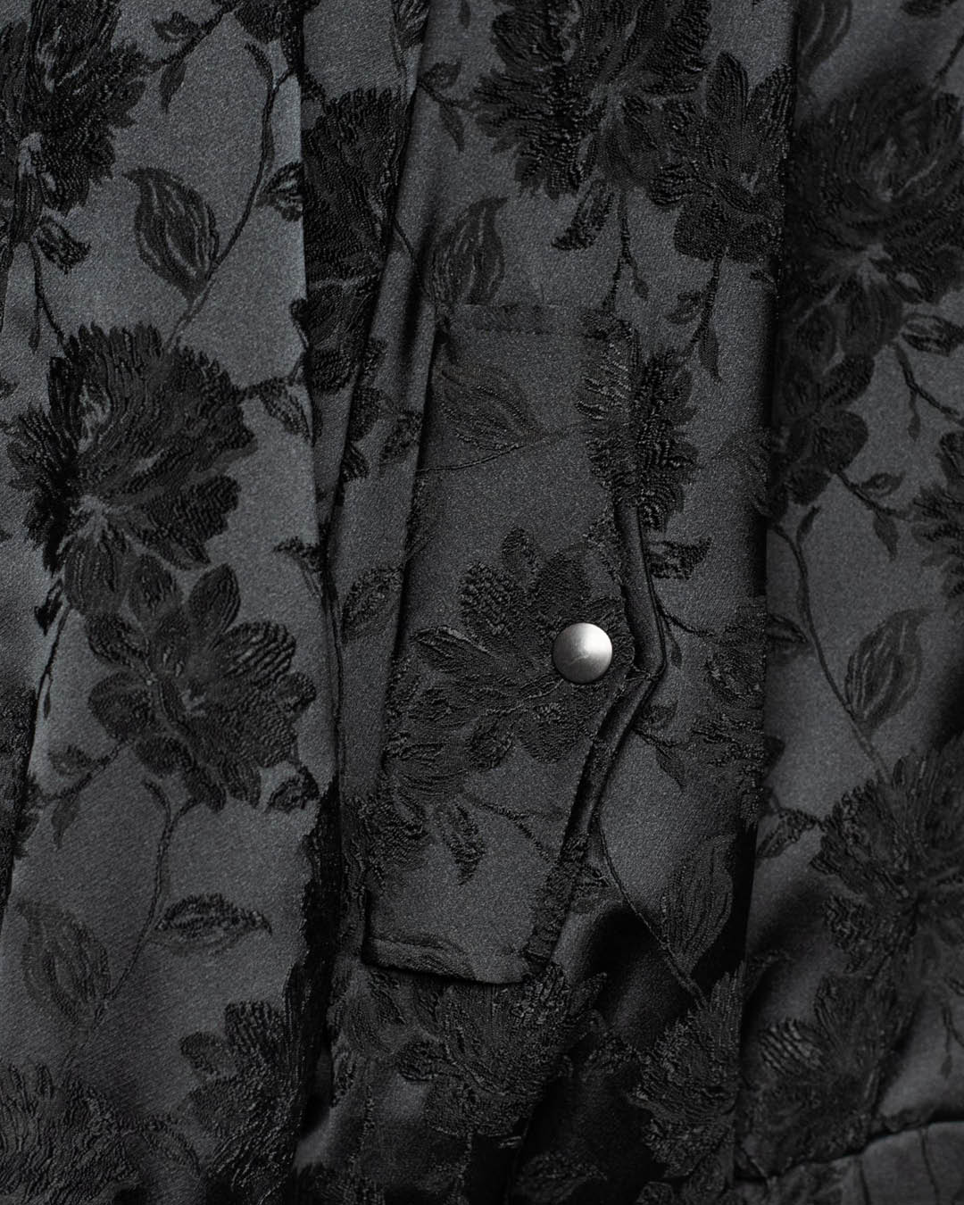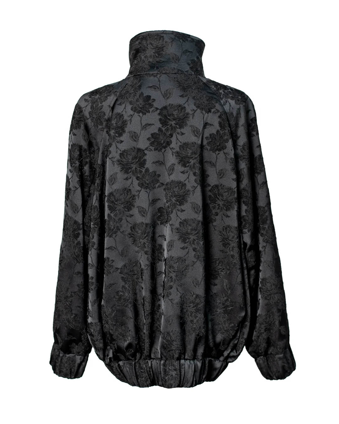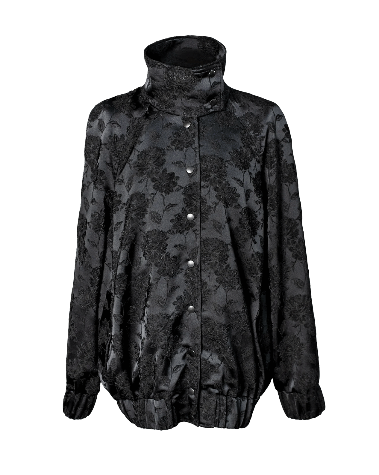 A festive take on KÄT’s classic bomber. The NIKO Noir is made from lustrous jacquard with tonal floral patterns that add texture and depth. The high collar and softly structured silhouette create an elegant yet relaxed look. Ideal for dressing up evening looks or adding a touch of shine to everyday outfits. Metal snap buttons. Wide fit. Fully lined. Side pockets. Inner pockets. Elastic hem and cuffs. Materials 44% acetate, 35% polyester, 18% polyamide, 3% elastane. Dry cleaning only.