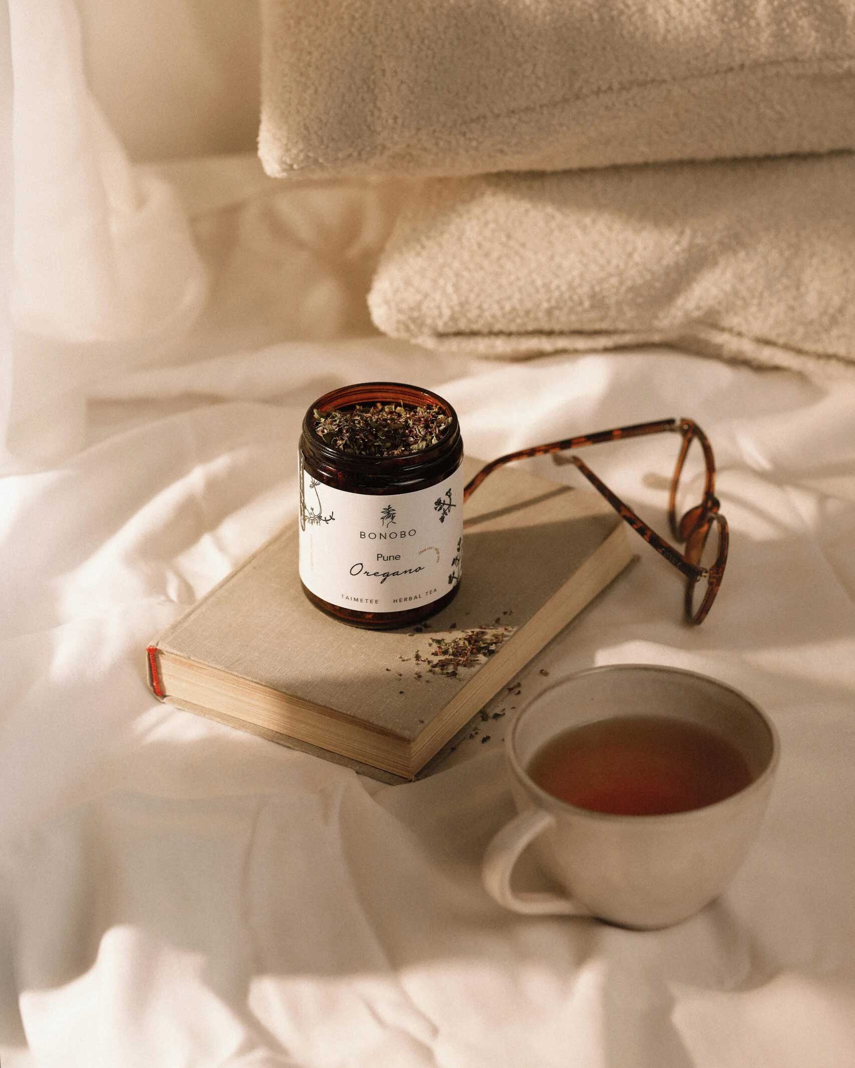 Bonobo´s oregano tea has a calming effect, helping reduce headaches and giving you a good night sleep. Use oregano tea in case of cough and cold. This aromatic herb relieves bloating, constipation, and stimulates the functioning of digestive glands. When you are hearing swashing noises in your ears, then give oregano tea a try. Net worth: ca 25 g. Ingredients: oregano herbs (Origanum Vulgaris). Preparation: take 1 tablespoon of herbs, and cover with hot water (80-90°C). Let it settle for 5 minutes, and then drain. Enjoy your tea Usage: drink warm whenever you feel like it. You can also add honey or sugar. Preservation: keep safe from children. Store in a dry place. Avoid sunlight. Storage life: 6 months after initial opening.