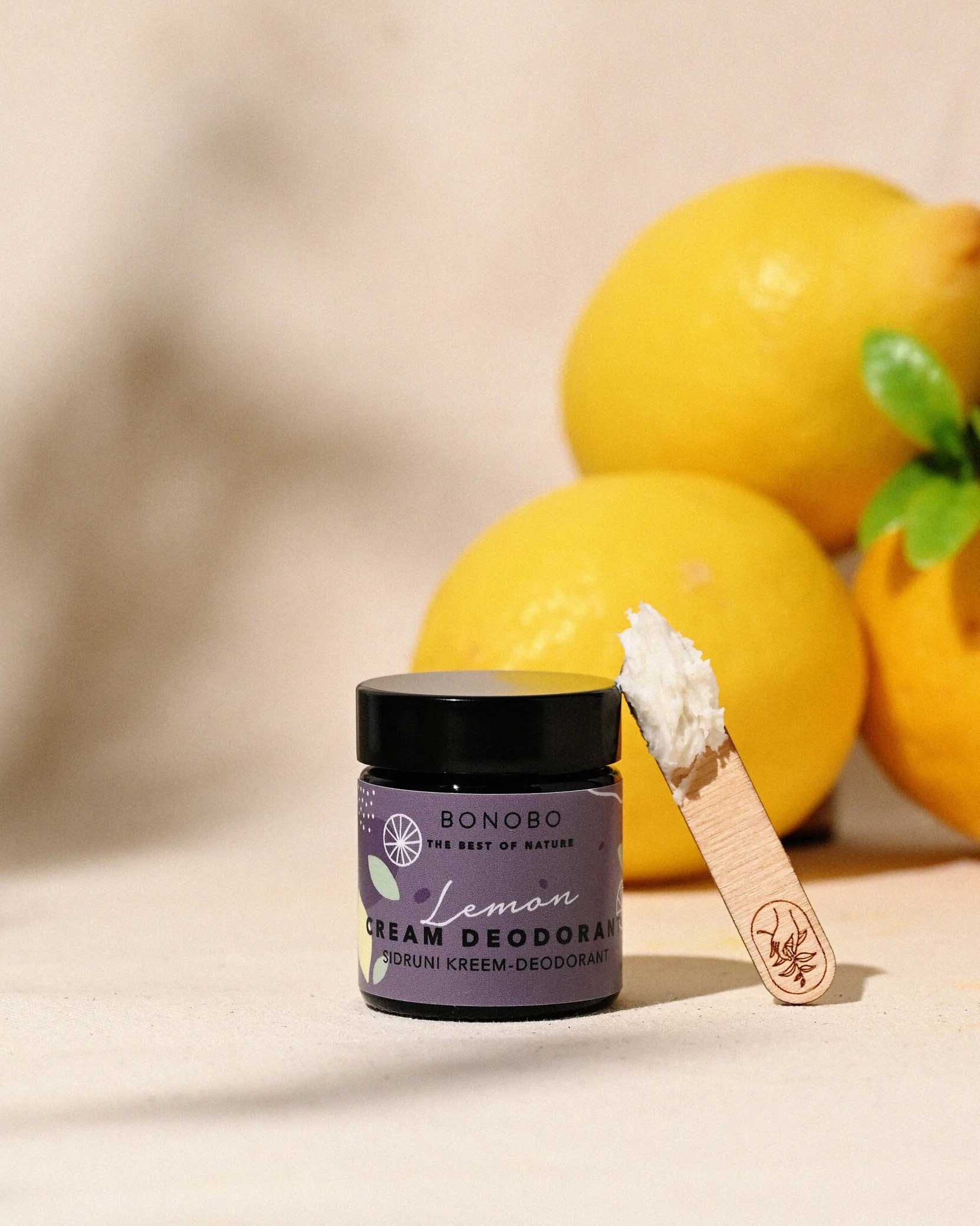 An antimicrobial deodorant cream with a fresh lemon aroma from Bonobo – completely natural and gentle on your skin all day long! Ideal for daily use, it neutralises body odour without clogging pores. How to use: Gently glide your fingertips over the paste and massage a small amount into slightly damp underarms. Allow it to absorb for 5 minutes before dressing. Only a very small amount is needed – if it feels greasy, you have applied too much. Note: May cause irritation if applied immediately after shaving. For external use only. Keep out of reach of children. Store in a cool, dry place, away from heat sources and direct sunlight. Ingredients: Tapioca Starch, Cocos Nucifera Oil, Butyrospermum Parkii Butter, Sodium Bicarbonate, Avena Sativa Kernel Oil, Hydrogenated Vegetable Oil, Kaolin, Simmondsia Chinensis Seed Oil, Citrus Limon Peel Oil*, Tocopherol. *d-Limonene, Linalool, Citral.