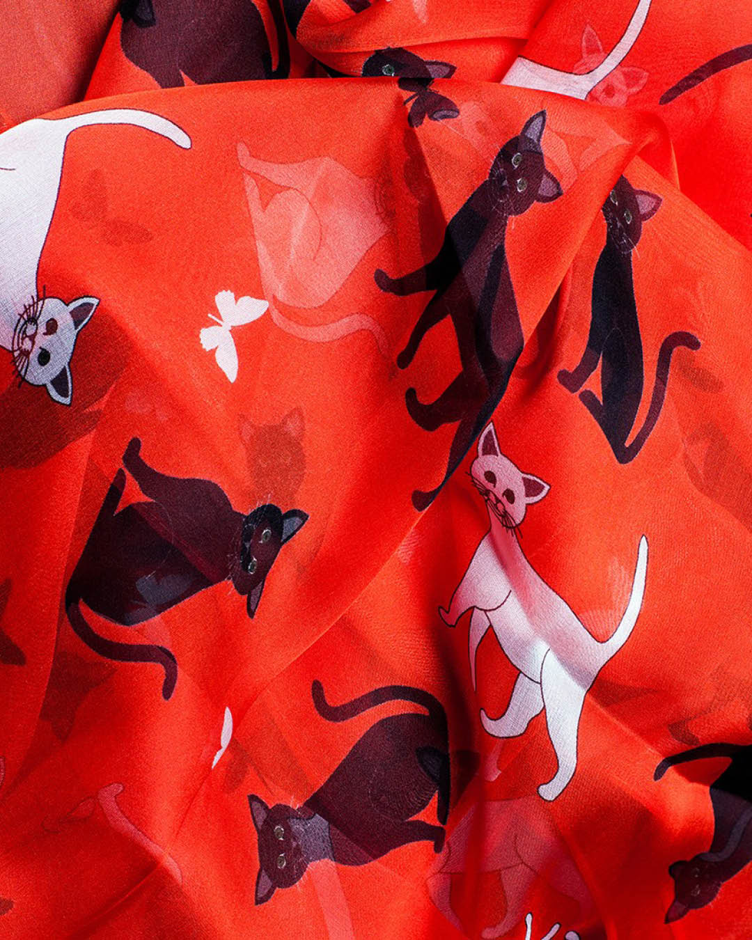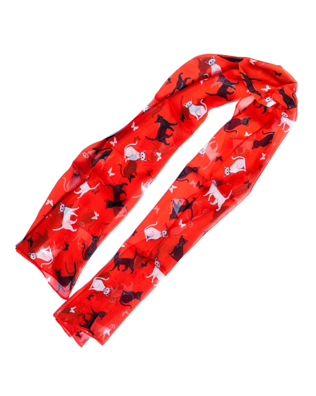 Silk Scarf with Cats on a Red Background 65 x 180 cm
