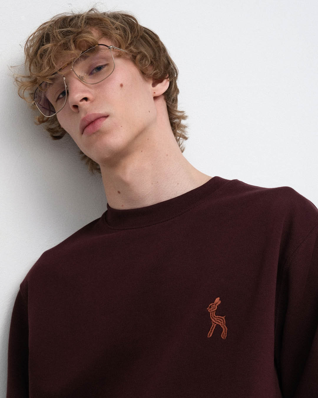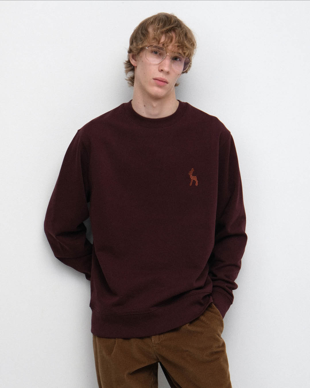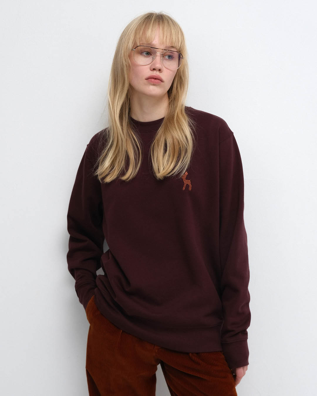 Unisex sweatshirt OIU by Hannes Rüütel. Material: 100% organic cotton (OEKO-TEX®, PETA-Approved Vegan). Unisex, relaxed fit. Ready-made product with unique embroidery designed by Hannes Rüütel. Size S – chest 110 cm, body length 71 cm. Size M – chest 118 cm, body length 73 cm. Size L – chest 126 cm, body length 75 cm. Size XL – chest 130 cm, body length 77 cm. Machine wash 30°C.