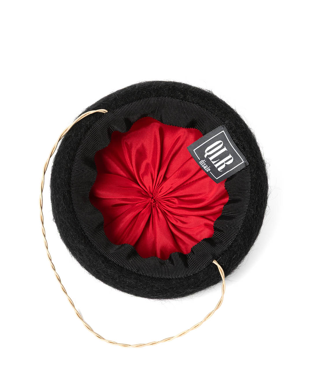 This small and charming round beret by QLR Disain is made from furry recycled felt, giving it a unique texture and character. You can style it in different ways – wear it smooth and sleek for a refined look, or fluff up the surface slightly with your hand for a playful, casual touch.The beret is lined with a beautiful red viscose fabric, adding comfort and a hint of elegance. It stays securely in place with an elastic band that sits comfortably at the back of the head. Hat height: 6 cm. Diameter: 15 cm.