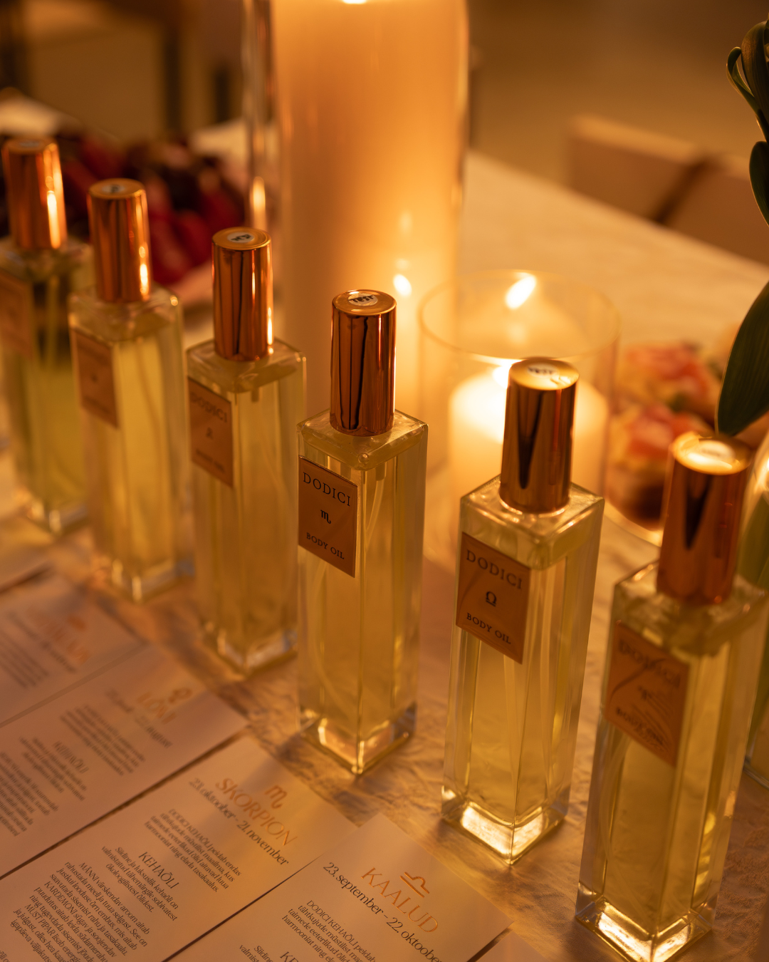 Õhtu jooksul avanes kõikidel võimalus süveneda nii iseendasse kui ka looduse ja universumi peenematesse mõjudesse. Tutvusime DODICI brändi looja Kadri Lutusega ning kuulsime lähemalt brändi sünniloost ja filosoofiast. Üheskoos avastasime astroloogia mõju meie emotsioonidele ja eluteele ning arutlesime iidsete ilurituaalide ja taimede tarkuse üle. Oluliseks osaks õhtust oli ka praktiline kogemus – tunnetasime, kuidas aroomid võivad toetada sisemise tasakaalu loomist ja avada intuitiivset jõudu.