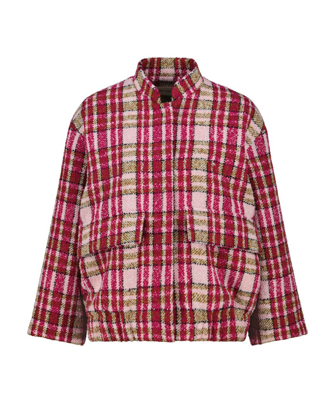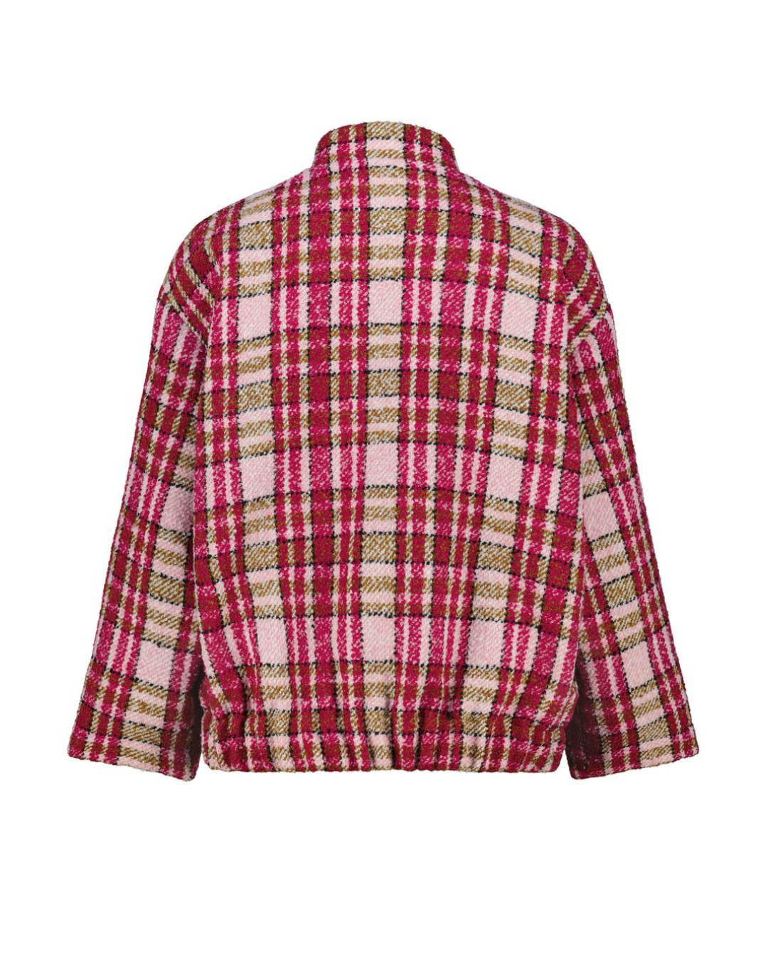 ADA roosa-beežikirju bomberjakk disainerilt Piret Kuresaar. Oversize tegumoega bomber. Jakil on pealeõmmeldud klapiga taskud. Jakk on eest suletav trukkidega. Materjal: polüester 50%, puuvill 50%. Vooder: viskoos 100%. Onesize.