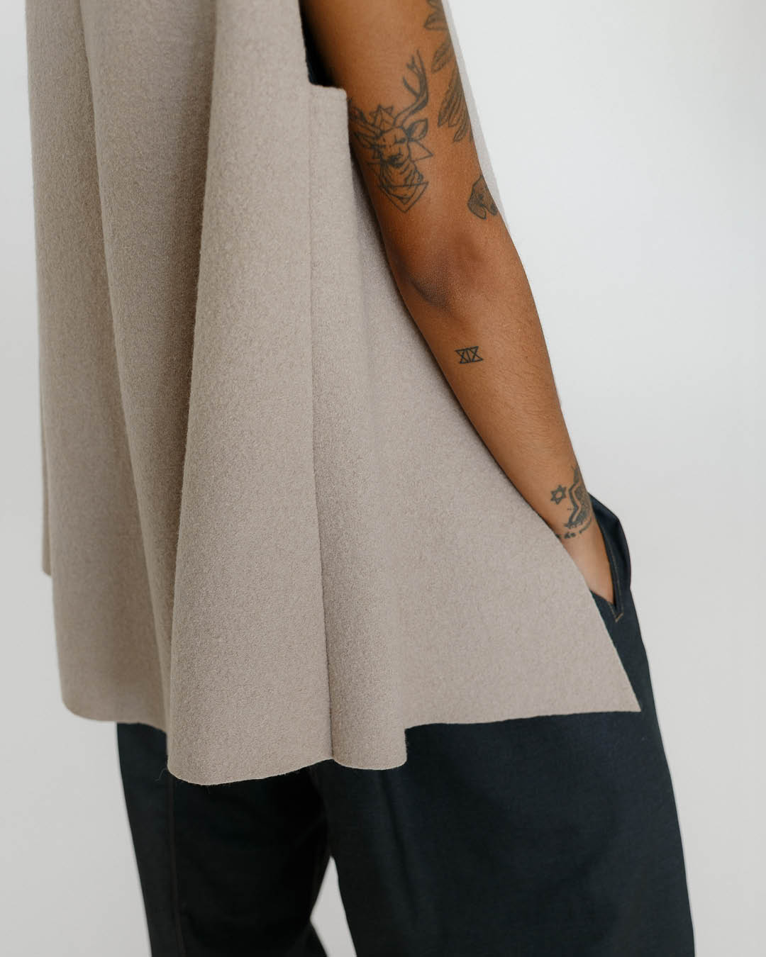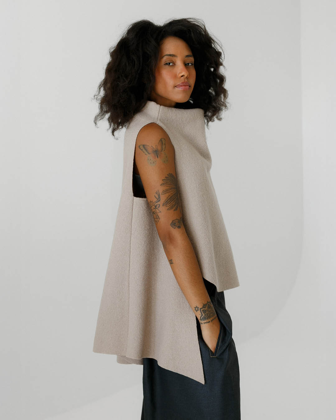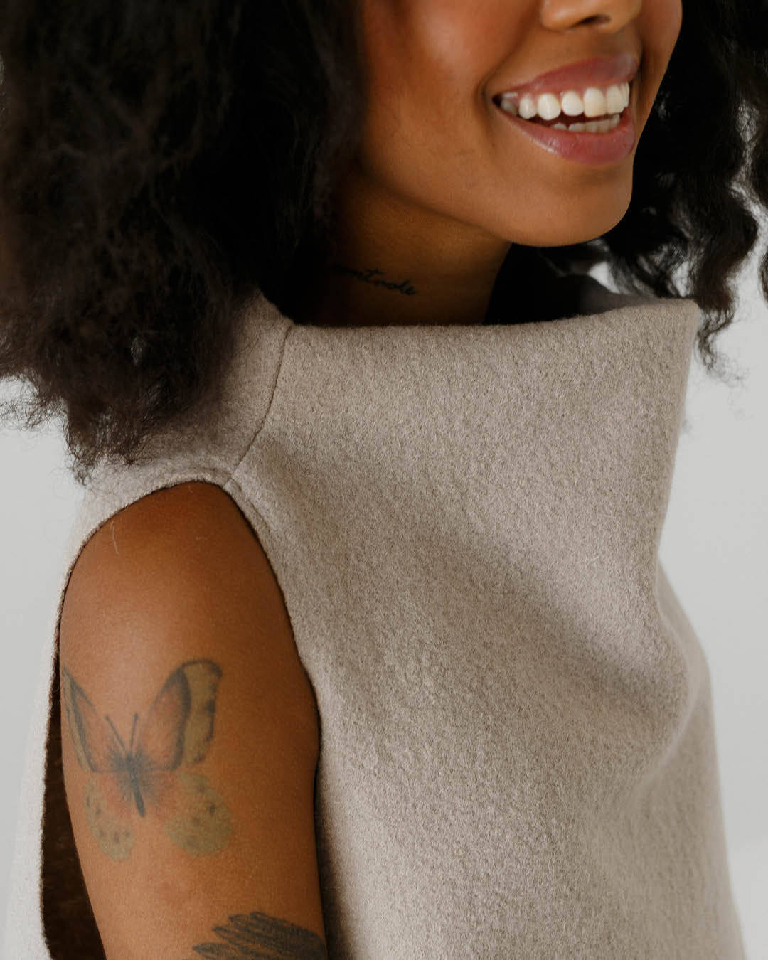 Buklee villast vest brändilt B.MOR Studio on nutikas, hingav, mugav ja erakordselt tõhus. See garderoobi põhielement lisab igale outfit’ile pisut glamuuri, muutes iga hetke eriliseks. Sõna “bouclé” tuleneb prantsuskeelsest sõnast “kähar”. Bouclé-vest lisab sinu rõivastele soojust ja tekstuuri. Naudi selle mitmekülgsust: kanna seda mantli või trentši all või siseriietuse peal. ONE SIZE: sobib nii XS-ile kui ka XL-ile. Koostis: 100% bouclé-vill. Villatunnistused: Mulesing Free, Oeko-Tex Standard 100, klass II.