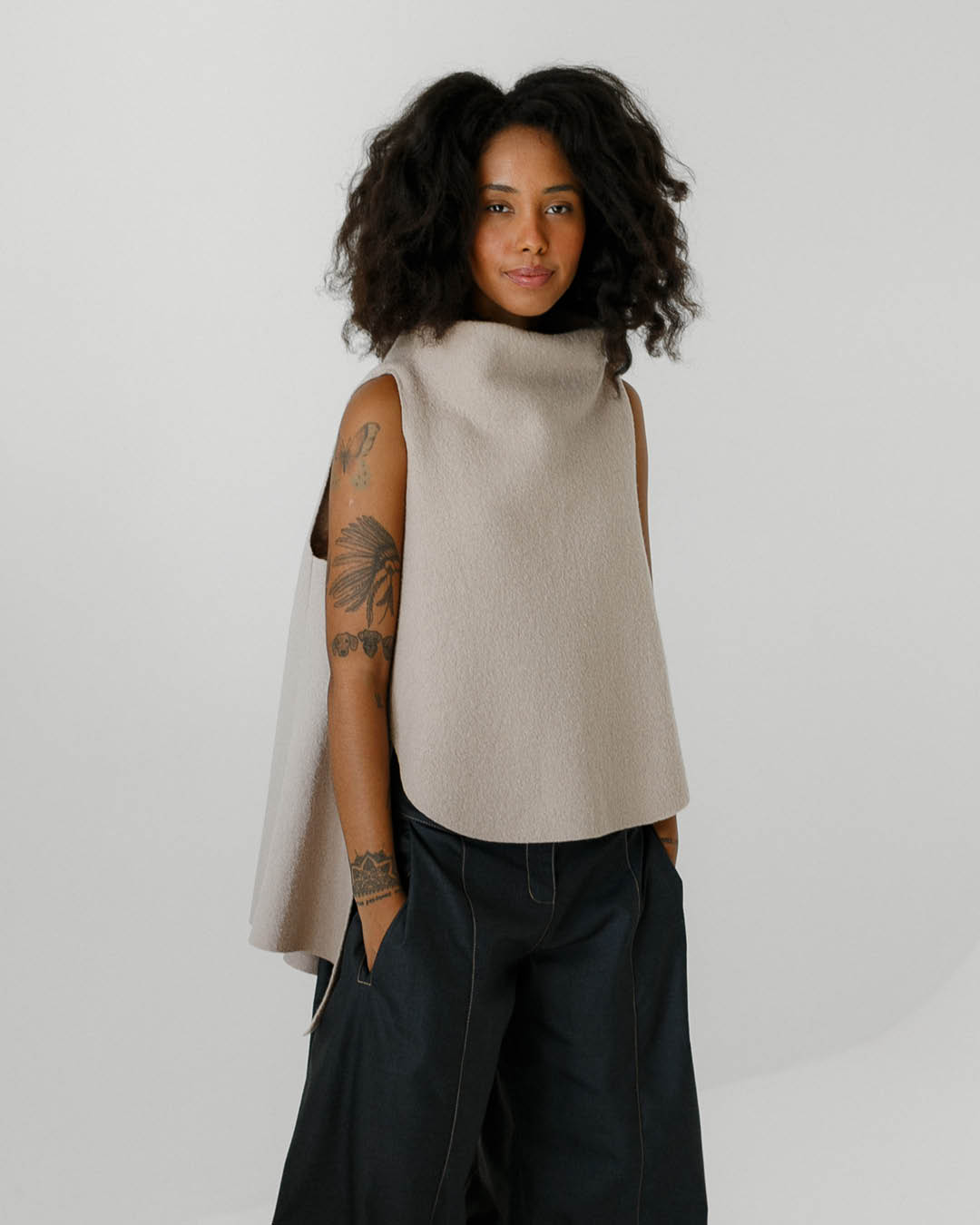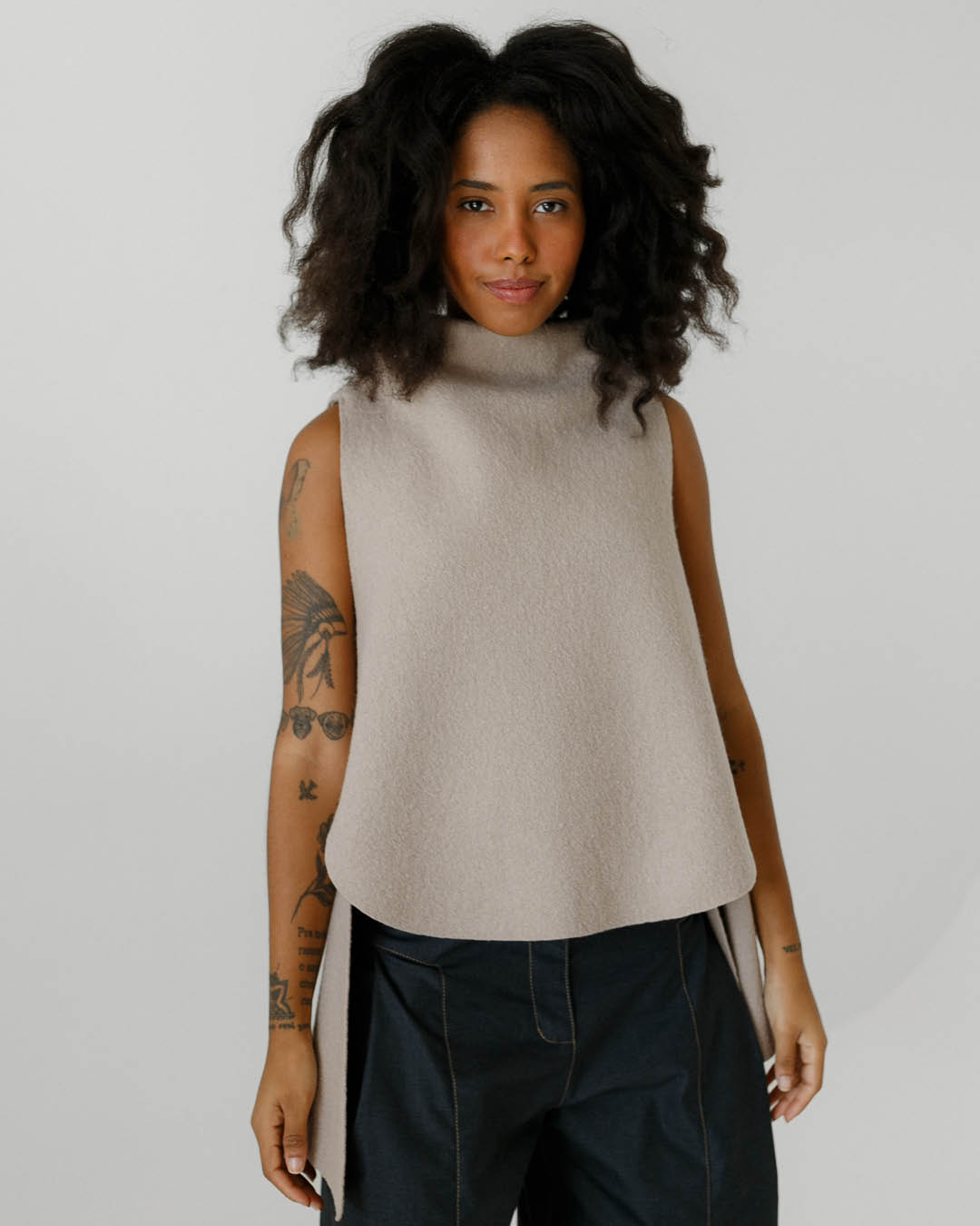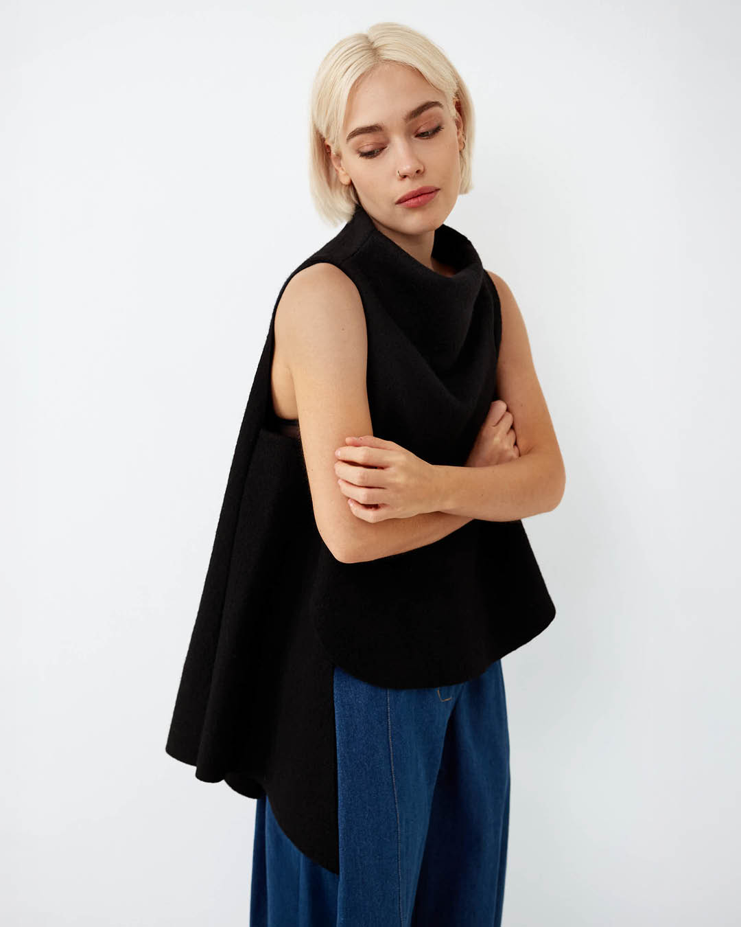 Buklee villast vest brändilt B.MOR Studio on nutikas, hingav, mugav ja erakordselt tõhus. See garderoobi põhielement lisab igale outfit’ile pisut glamuuri, muutes iga hetke eriliseks. Sõna “bouclé” tuleneb prantsuskeelsest sõnast “kähar”. Bouclé-vest lisab sinu rõivastele soojust ja tekstuuri. Naudi selle mitmekülgsust: kanna seda mantli või trentši all või siseriietuse peal. ONE SIZE: sobib nii XS-ile kui ka XL-ile. Koostis: 100% bouclé-vill. Villatunnistused: Mulesing Free, Oeko-Tex Standard 100, klass II.