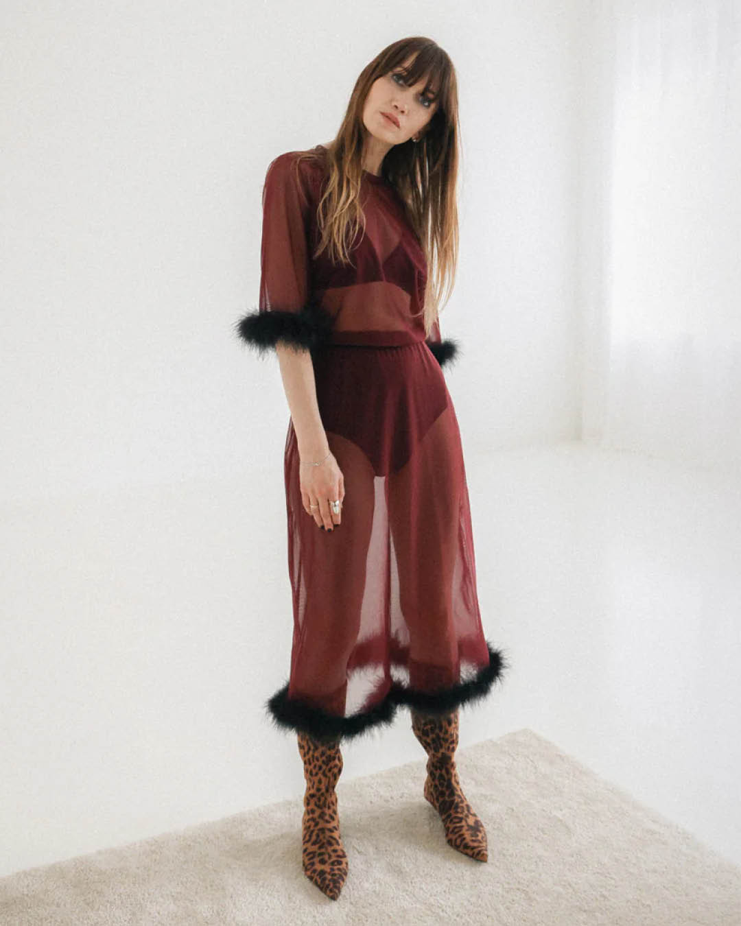 Kriss Sooniku võrksärk on piiratud koguses valmistatud taaskasutus-toode. Valmistatud on vaid 10 võrksärki burgundi toonis pehmest kangast. Kõik eksemplarid on nummerdatud. Eemaldatavad Marabou sulgedega äärised varrukatel. Varrukatel on kinnitusaasad sulgede jaoks. Materjal: 90% polüester, 10% elastaan. Pesu: masinpesu 30°C. Enne pesemist eemalda sulgede äärised. Valmistatud Eestis. See disain sündis Krissi 5-nädalase disainiväljakutse tulemusena – taaskasutusprojekt, kus loodi limiteeritud kollektsioon ainult varasemate kollektsioonide kangajääkidest. "See algas kevadpuhastusega ja lõppes sellega, et olin põlvini trikookangaste, pitsijääkide ja veidi dramaatilise missiooniga taaskasutada kõik meie kangavarud." – Kriss
