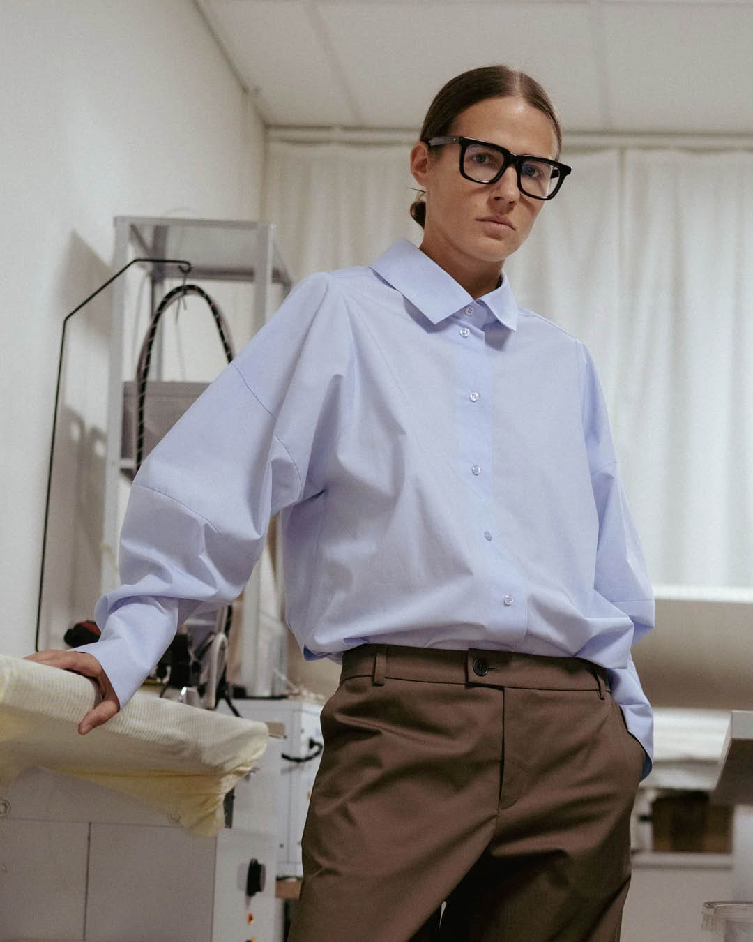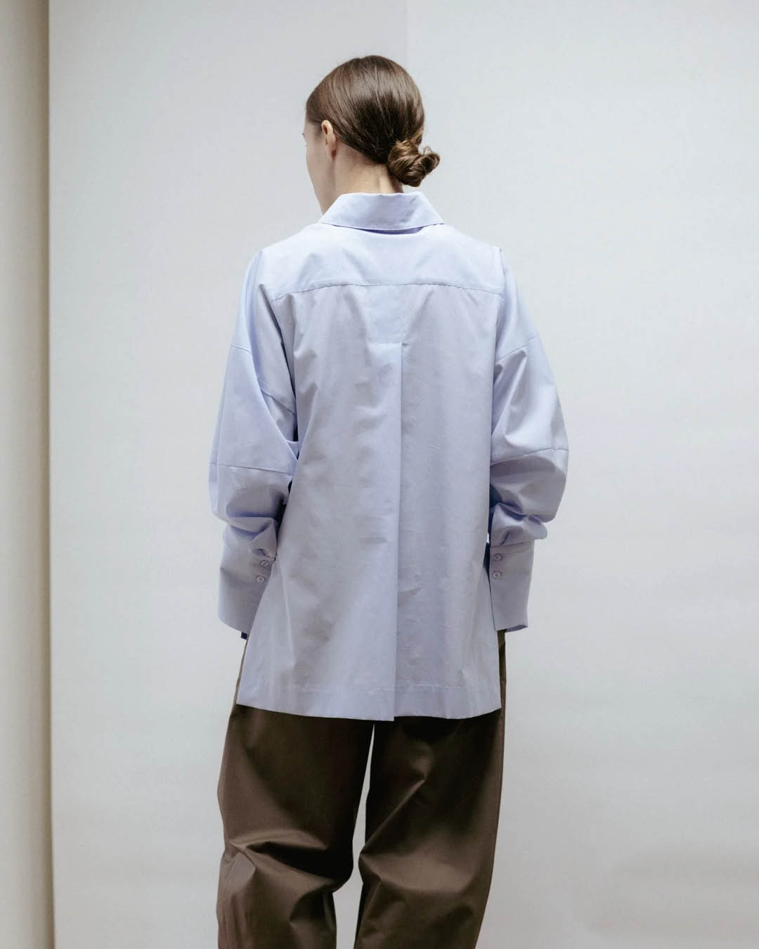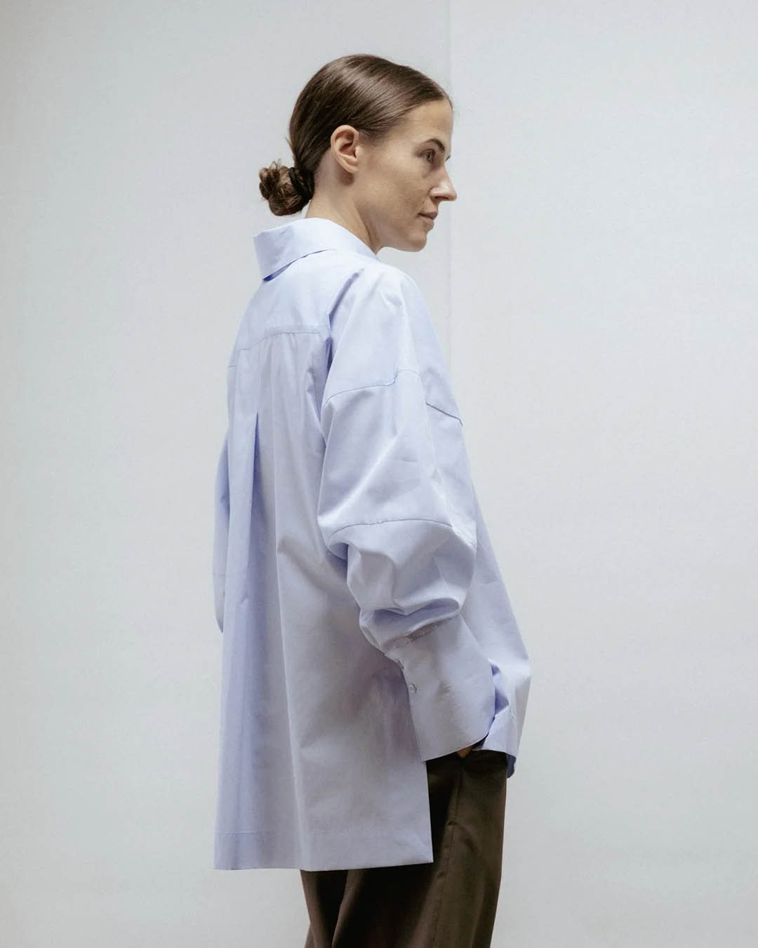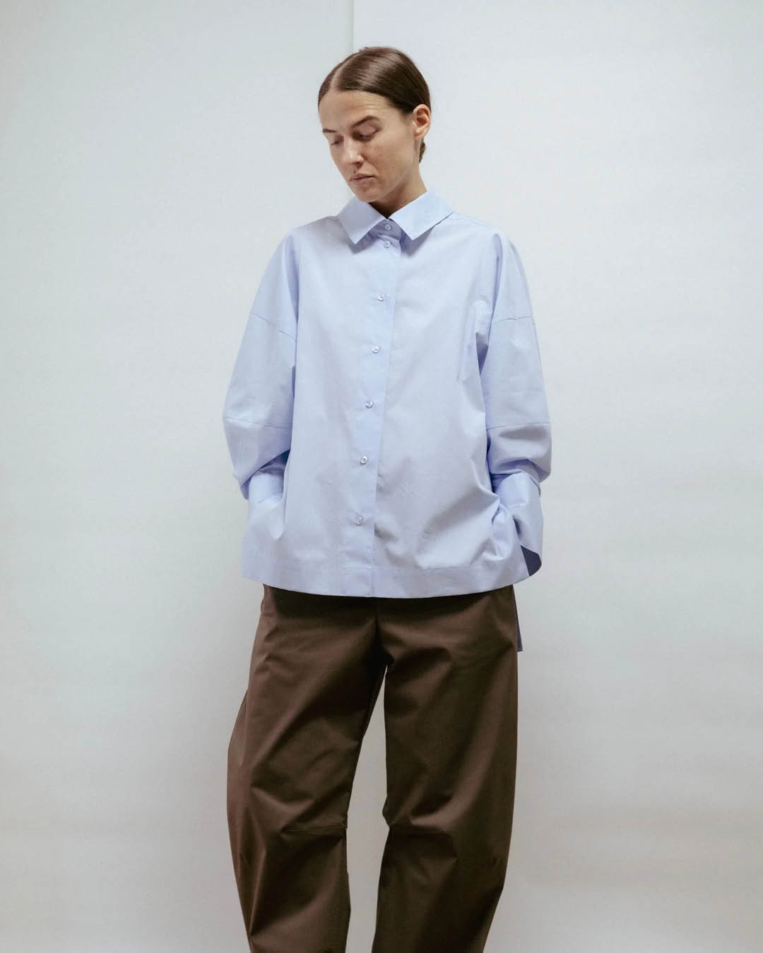 Eve Hansoni helesinine pluus on loodud neile, kes hindavad puhtaid jooni, vaikset enesekindlust ja loomulikku liikumisvabadust. Eestis valmistatud 100% kvaliteetsest puuvillast, ühendab see rõivas struktuuri ja pehmuse, luues silueti, mis on ühtaegu klassikaline ja kaasaegne. Kergelt laienevad varrukad ja laiad mansetid lisavad peent skulpturaalset joont, samas kui küljehalked ja veidi pikem seljaosa tagavad kauni ja mugava istuvuse. Kombineerituna viigipükste või teksadega sobib see pluus nii tööle kui ka vabaks ajaks, pakkudes ajatut ja tagasihoidlikku elegantsi. Koostis: 100% puuvill. Valmistatud Eestis. Nööpidega kinnitus, küljehalked, laiad mansetid. Masinpesu vastavalt hooldusjuhistele (soovi korral keemiline puhastus). Suuruse S seljapikkus: 75 cm. Modell on 170 cm pikk ja kannab suurust S.