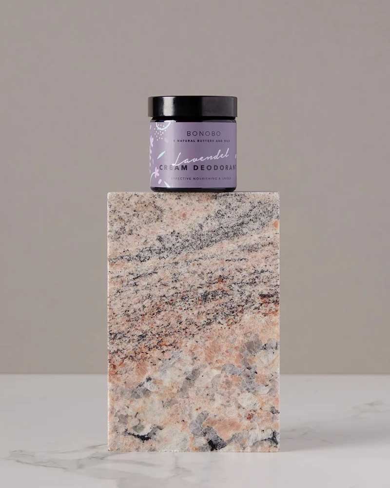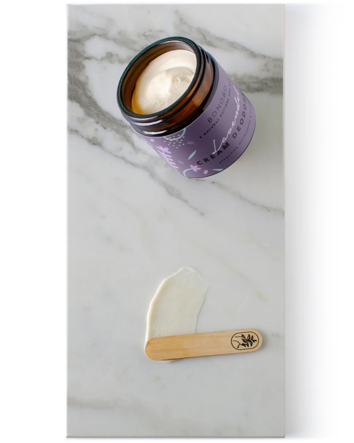 Antimikroobne lavendli aroomiga deodorant-kreem brändilt Bonobo on täiesti looduslik ning hoolitseb Sinu naha eest õrnalt kogu päeva! Sobib igapäevaseks kasutamiseks neutraliseerides higilõhna ilma poore ummistamata. Kasutamine: Libista õrnalt sõrmedega üle pasta ning hõõru väike kogus kergelt niisketesse kaenlaalustesse. Lase 5 minutit imenduda enne riietumist. Väga väikesest kogusest piisab – kui tunne on rasvane, oled kasutanud liiga palju. NB! Võib põhjustada ärritust, kui kasutada kohe peale raseerimist. Ainult välispidiseks kasutamiseks. Hoida lastele kättesaamatus kohas. Säilita kuivas ja jahedas, eemal kuumaallikatest ja otsesest päikesevalgusest. Koostis: Tapioca Starch, Cocos Nucifera Oil, Butyrospermum Parkii Butter, Sodium Bicarbonate, Avena Sativa Kernel Oil, Hydrogenated Vegetable Oil, Kaolin, Simmondsia Chinensis Seed Oil, Lavandula Offinicialis*, Tocopherol. *d-Limonene, Linalol, Citral.