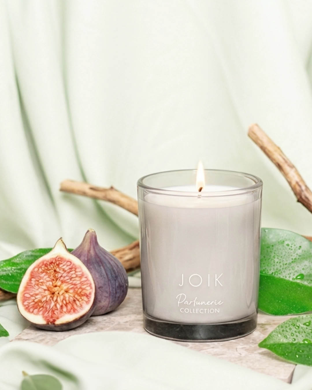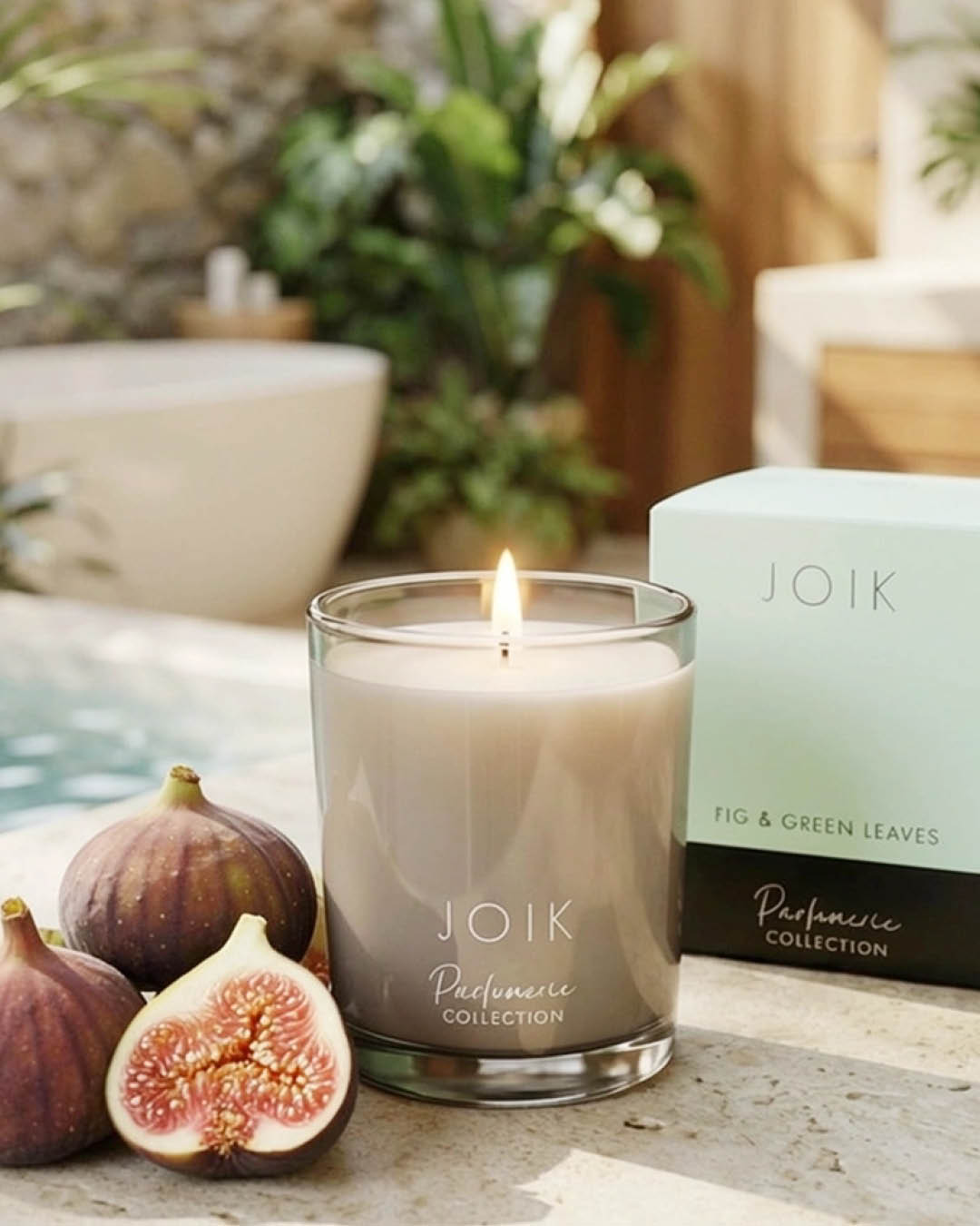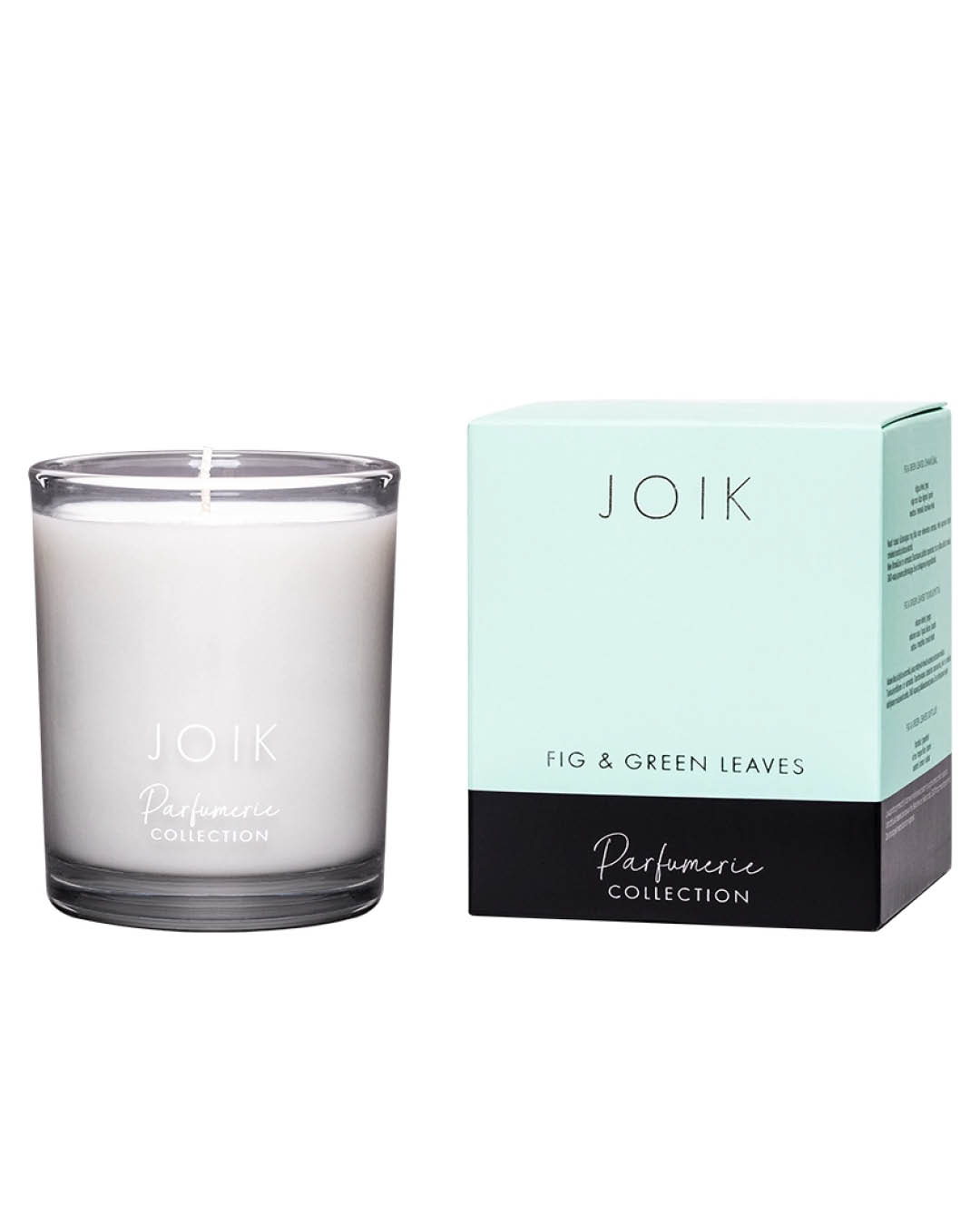Fig & Green Leaves lõhnaküünal kuulub JOIK Parfumerie kollektsiooni ning toob ruumi värske ja elegantse aroomi, milles põimuvad viigipuu lehed ja greip, küps viigimari, valge roos ja jasmiin ning sooja lõppakordina seedripuu, merevaik ja kannikese lehed. Küünal põleb kuni 45 tundi ning on valmistatud Skandinaavias toodetud GMO-vabast rapsivahast, mis põleb puhtalt ja on vegansõbralik. Koostis: rapsivaha, parfüüm.