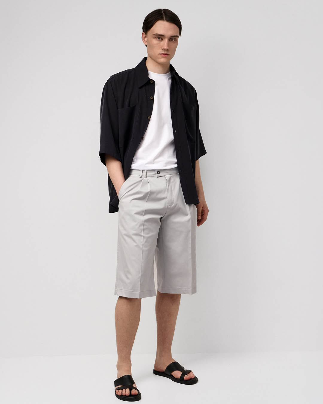 Disaineri Hannes Rüütel VERNA lühikesed püksid on laia lõikega ja kerged. Valmistatud Eestis 100% puuvillast, sobivad need hästi soojemateks päevadeks. Lihtne disain ja avar vorm loovad vaba silueti, mida on lihtne komplekti sobitada. Saadaval helehalli ja beeži toonina.
