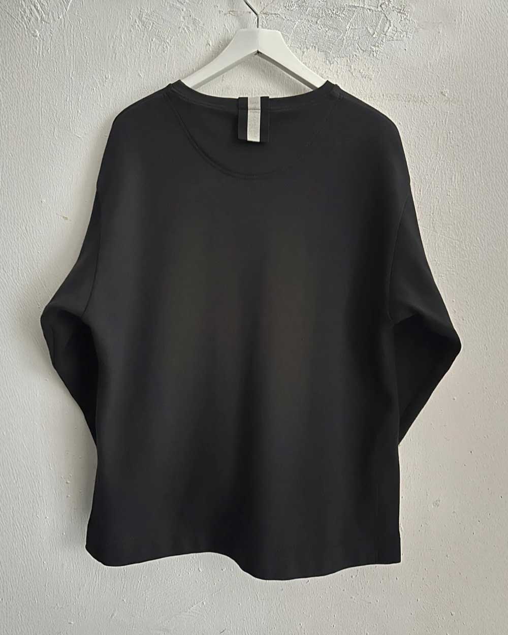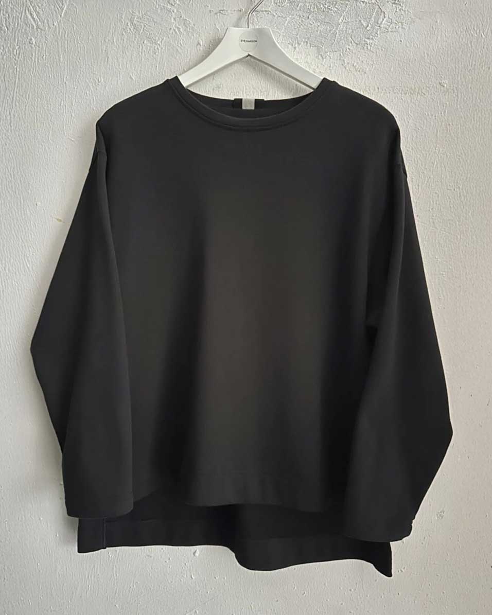 Eve Hansoni must pusa on valmistatud paksust puuvillasest trikookangast, mis on seljas pehme ja mugav. Pikendatud õlad ja avar lõige loovad meeldivalt voolujoonelise silueti, samas kui küljelõhikud lisavad rafineeritud detaili. Seljaosa on veidi pikem kui esiosa. Suuruses S on pusa pikkus ees 57 cm ja taga 71 cm. Toode on valmistatud Eestis. Materjal: 100% puuvill. Hooldusjuhised: pese masinas vastavalt hooldussildil toodud juhistele; keemiline puhastus on valikuline.