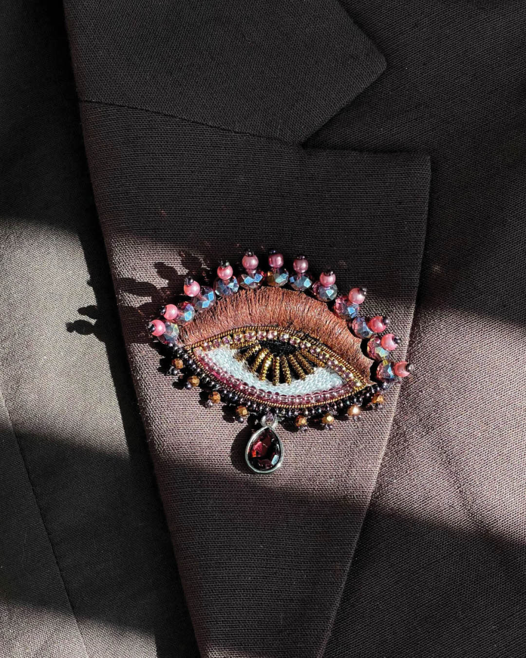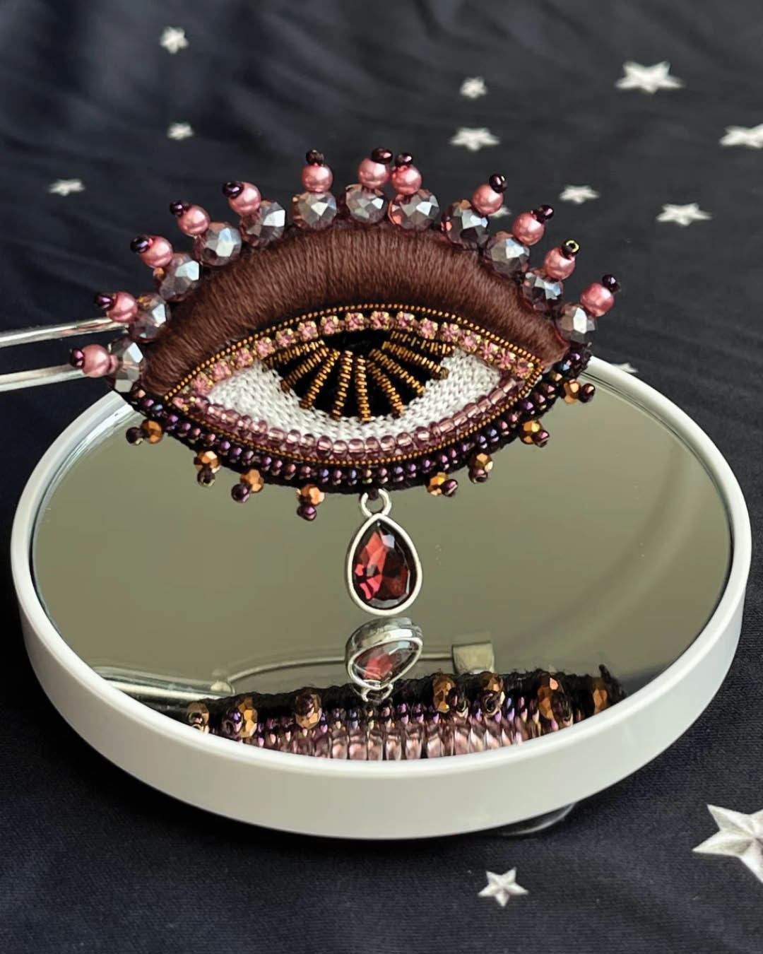 Pross Oculus on käsitsi valmistatud ja tikanditehnikas loodud eksklusiivselt VETKA jaoks. Täiuslik kingitus – kinkekarp on komplektis. Suurus 5 × 5,5 cm koos ripatsielementidega. See on ainulaadne käsitööeseme, mitte lihtsalt ehe, vaid tõeline kunstiteos, mis on hoole ja inspiratsiooniga käsitsi tikitud. Pross lisab sinu igapäevasele riietusele pisut peenust ja omapära, tuues igasse päeva veidi võlu ja salapära. Kuna pross on käsitsi valmistatud, võib see pisut erineda fotol kujutatust.