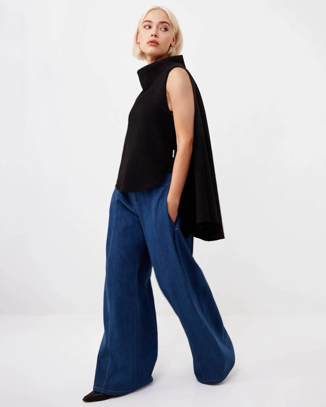 B.MOR Studio laiad puuvillased teksapüksid on loodud liikumiseks. Puuvillane kangas annab käsitöölise ilme ja tuulekindla tunde. Pikkus on disainitud ulatuma põrandani, sobides ideaalselt kandmiseks kontsade või platvormkingadega. Soovi korral saab neid muidugi hõlpsasti lühemaks palistada. Täienda välimust bukleevillaste vestidega, mis sobivad nendega ideaalselt kokku. Suurus L/XL: talje 89 cm. Teksade säärepikkus 78 cm. Mustade teksade säärepikkus 85 cm (pikendatud). Materjal: 100% puuvill, OEKO-TEX STANDARD 100 – testitud kahjulike ainete suhtes, UV-kaitse UPF 50+.