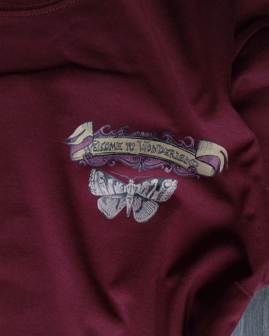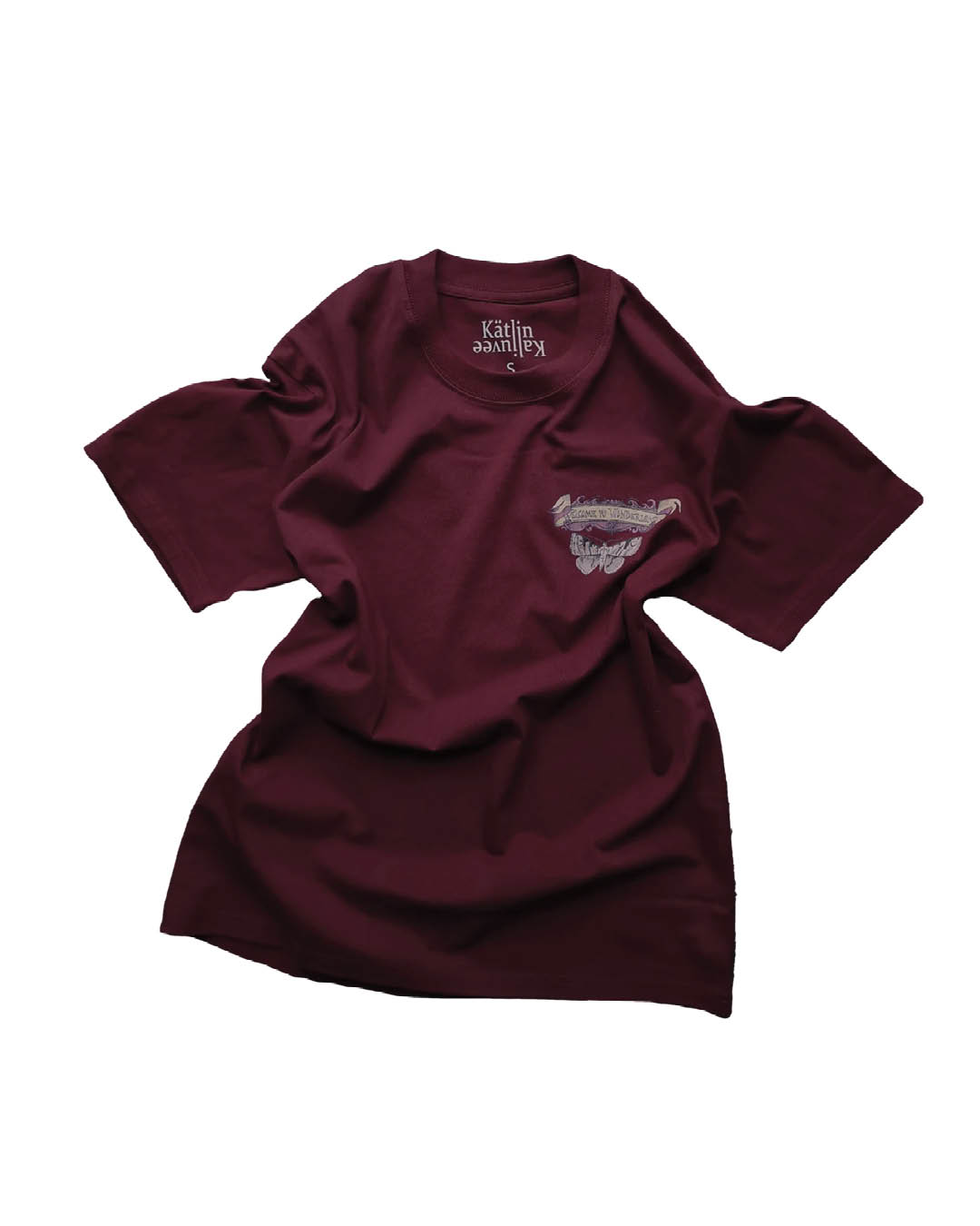 Astuge võlumaailma koos bordoopunase Alice´i T-särgiga disainerilt Kätlin Kaljuvee. See särk tuletab meelde, et iga päev on täis imesid, loovust ja avastamisrõõmu. Valmistatud 100% pehmest, hingavast puuvillast. Kaunis bordoopunases toonis ja kergelt taljesse lõikega mudel sobib ideaalselt igapäevaseks kandmiseks. Särgi rinnal on väike liblikaga trükk kirjaga “Welcome to Wonderland”, seljal aga tagasihoidlik kuid lõbus naeratava kassi- päikese kujutis. Modell pildil kannab S-suurust. Materjal: 100% puuvill.