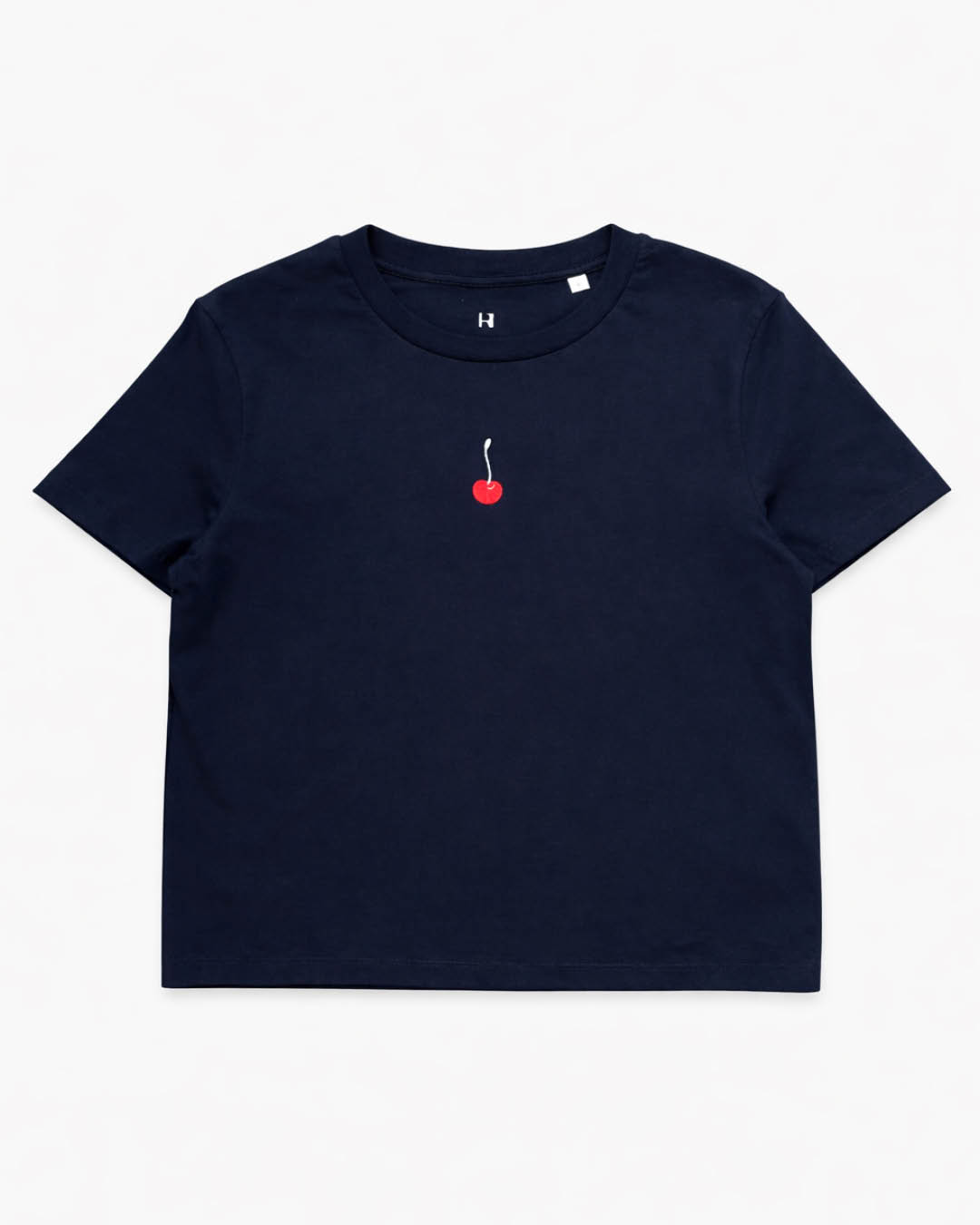 Kirsitikandiga tumesinine T-särk disainerilt Hannes Rüütel. Valmistatud 100% orgaanilisest puuvillast (OEKO-TEX®, PETA-Approved Vegan). Klassikalise lõikega. Suurused: XS (rind 88 cm, pikkus 52 cm), S (rind 94 cm, pikkus 54 cm), M (rind 100 cm, pikkus 56 cm), L (rind 106 cm, pikkus 58 cm) ja XL (rind 112 cm, pikkus 60 cm). Hooldus: masinpesu 30°C.