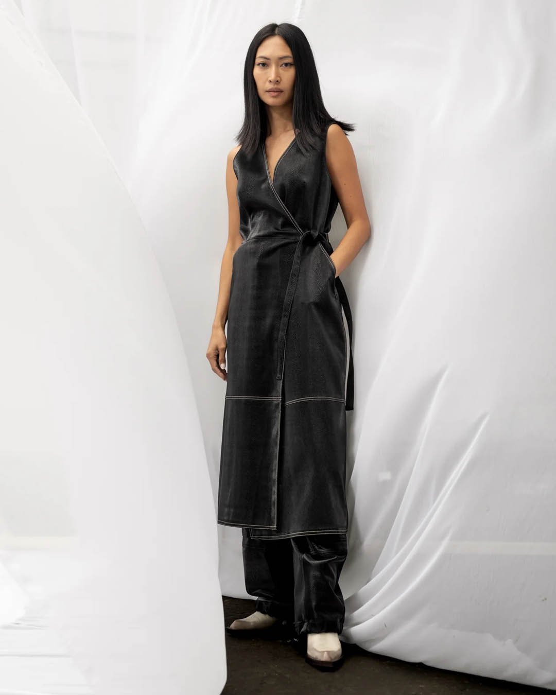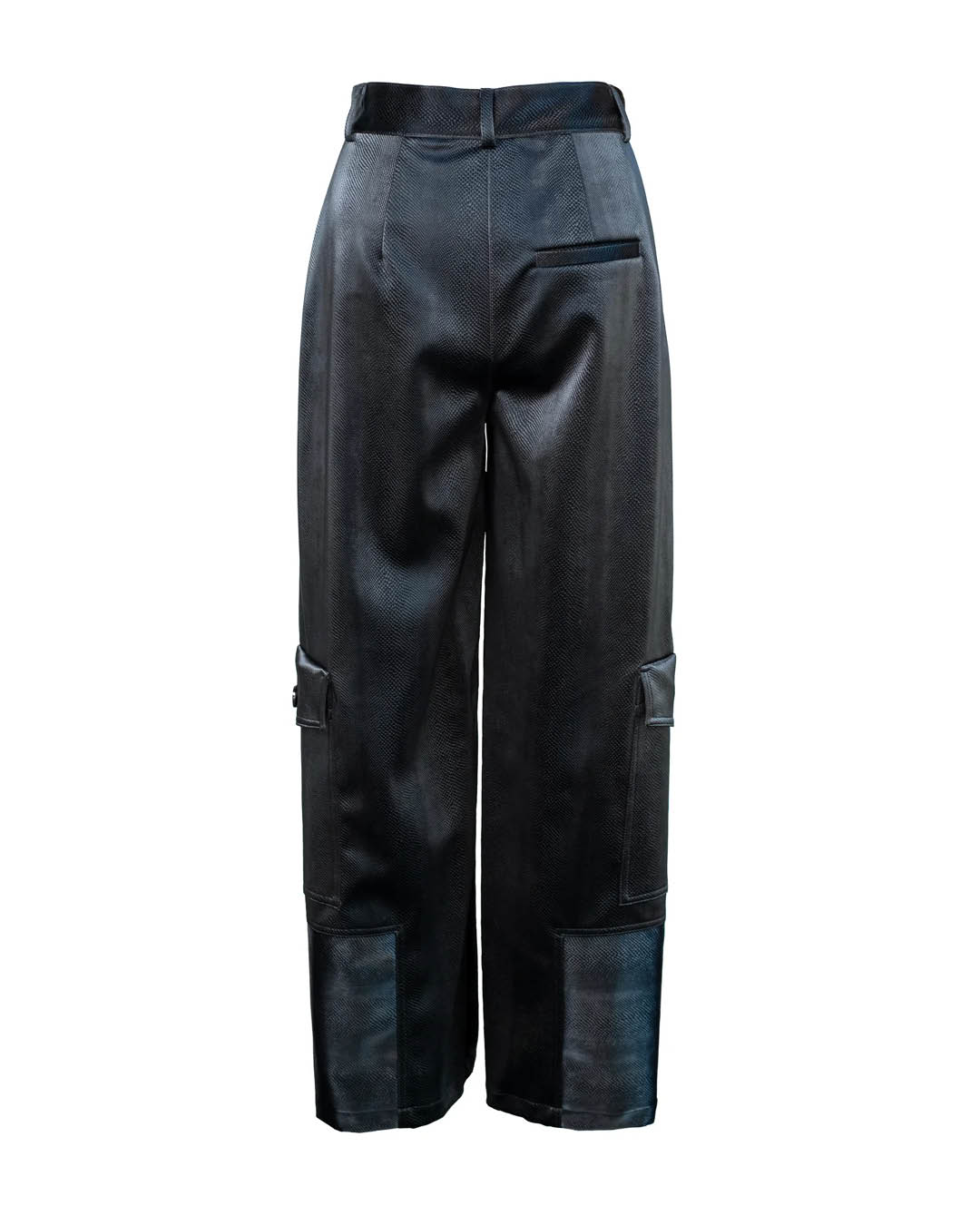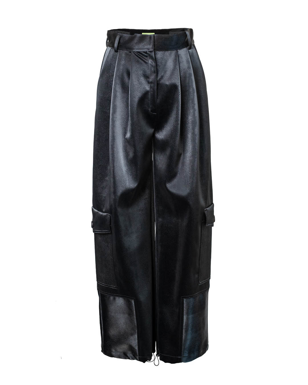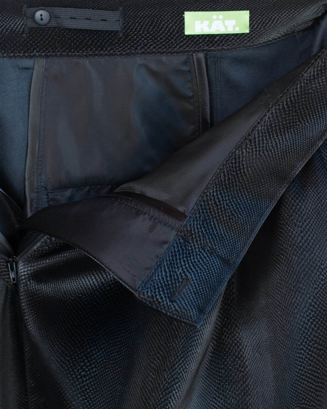 KÄTi TARA ussimustrilised püksid annavad sädelusele uue tähenduse – nende siidjalt läikiv, ussinahka meenutav tekstuur mängib valgusega, luues peene ja julge efekti. Struktureeritud voldid ja cargo-stiilis taskud tasakaalustavad praktilisuse ja enesekindla hoiakuga disaini, samas kui reguleeritavad püksisääred võimaldavad muuta siluetti vastavalt tujule – avatult, suletult või vahepealselt. Need püksid on loodud neile, kes ei pelga tähelepanu. Reguleeritav vöö kummipaelaga. Küljetaskud, pealeõmmeldud taskud ja tagatasku. Dekoratiivsed detailid külgedel. Reguleeritava laiusega sääreotsad. Materjal: 60% polüuretaan, 40% viskoos. Hooldus: ainult käsipesu.