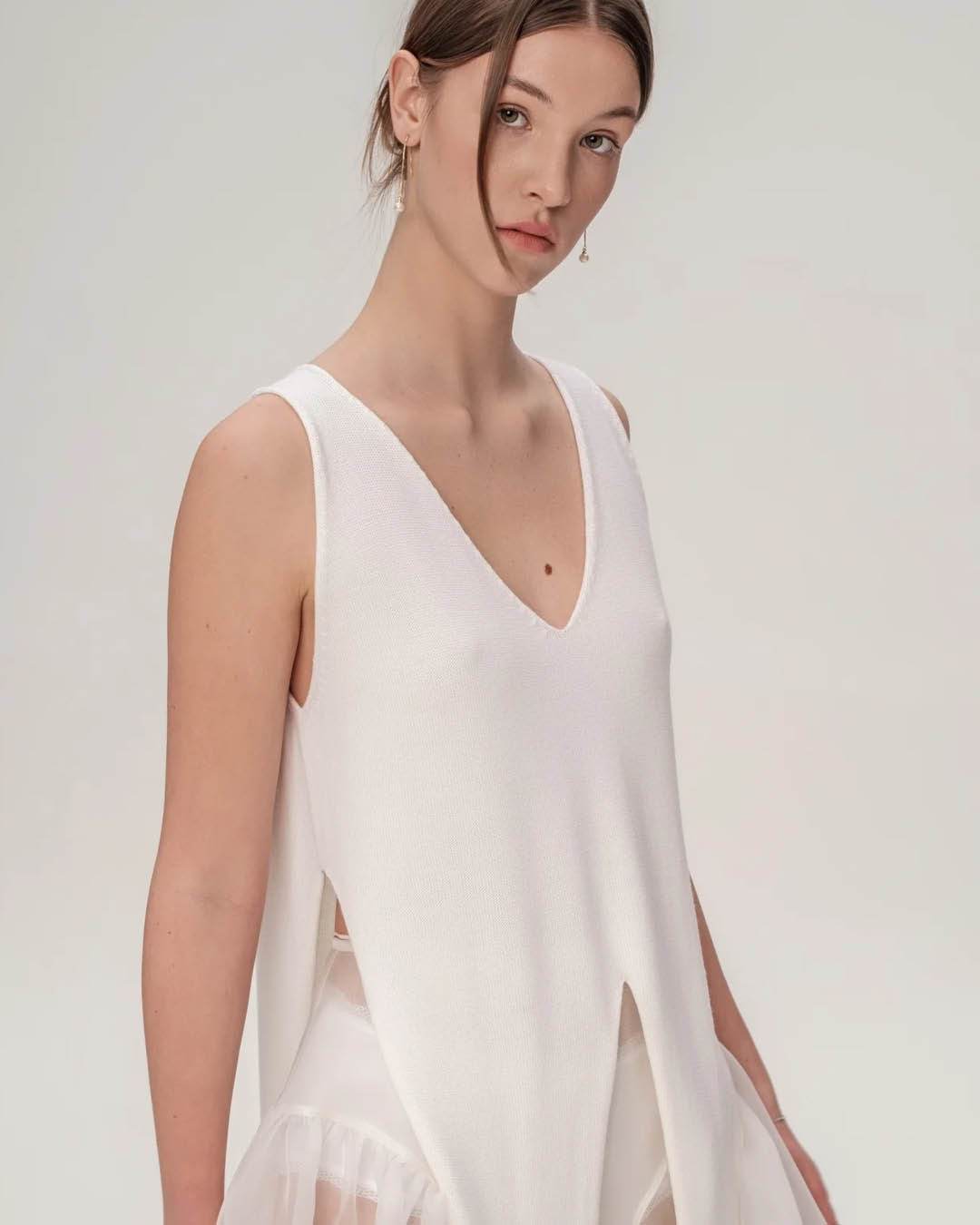 Verensi pehme kootud vest, mis on valmistatud 100% villast kasutades kaasaegset 3D Ômblustevaba kudumistehnoloogiat. Peen kudum kohandub loomulikult keha kujuga ning tagab mugavuse ja hea hingavuse. Vest sobib hÀsti kihiliseks kandmiseks sÀrkide, kleitide vÔi kudumite peale, luues puhta ja modernse silueti. Valmistatud kÀsitööna Euroopa Liidus.